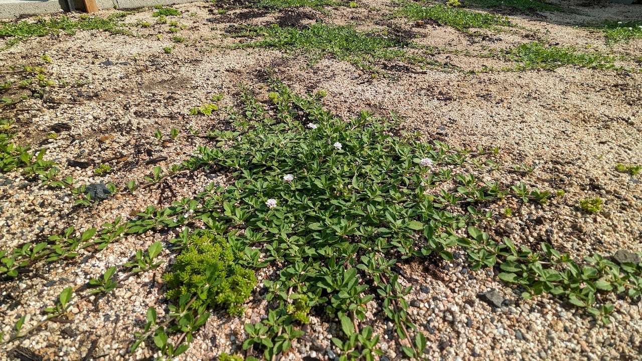 それぞれの苗から放射線状に根が伸びてきました。ポットのサイズから比較すると、面積比で3〜5倍くらいにはなってそう。でも、予算をケチッて1平米あたり約3苗しか配置してなかったので、全面を覆うまではまだまだ時間がかかりそうな感じです。