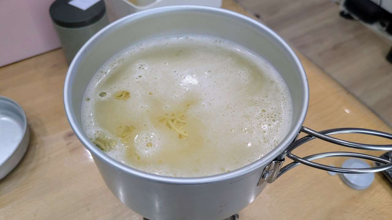 一方、うまかっちゃんなどの四角い乾麺だと割らないと鍋に納まらず、少し手間がかかります。キャプテンスタッグが出している角型のラーメンクッカーなんてものもありますが、袋麺だけの為に購入するのも気が退けているところです…。んー、いや、でも。袋麺の頻度は高いからアリかな?