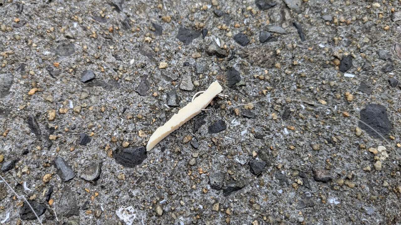 今日は市内の岸壁に行ったあと、別のところにある防波堤に行きました。惜しくも賞味期限を切らしてしまったサラダチキンをオキアミサイズにカットして冷凍しています。それを持って餌釣りをしていました。