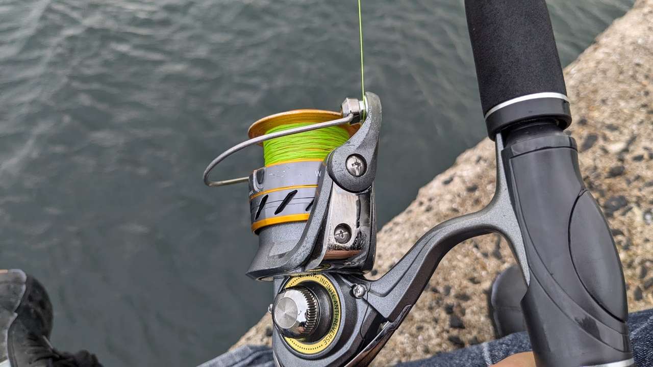 キャストしてふと手元を見てみると、ラインがだいぶ減っていてスプールの内側が見えつつありました。こいつに巻き直して、もう11ヶ月くらい使ってますもんね。