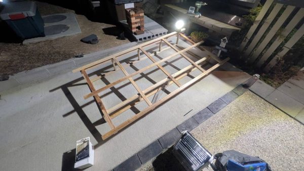 スチールラックを使って物置小屋を作っています。前回の記事では、ポリカ波板で壁を作るところまでしました。今回は屋根を作っていきます。